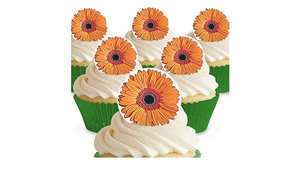Cakeshop 12 X Pre Cut Edible Orange Flower Cake Toppers Cake Toppers Printed Wafer Rice Paper Toppers Amazon De Grocery
